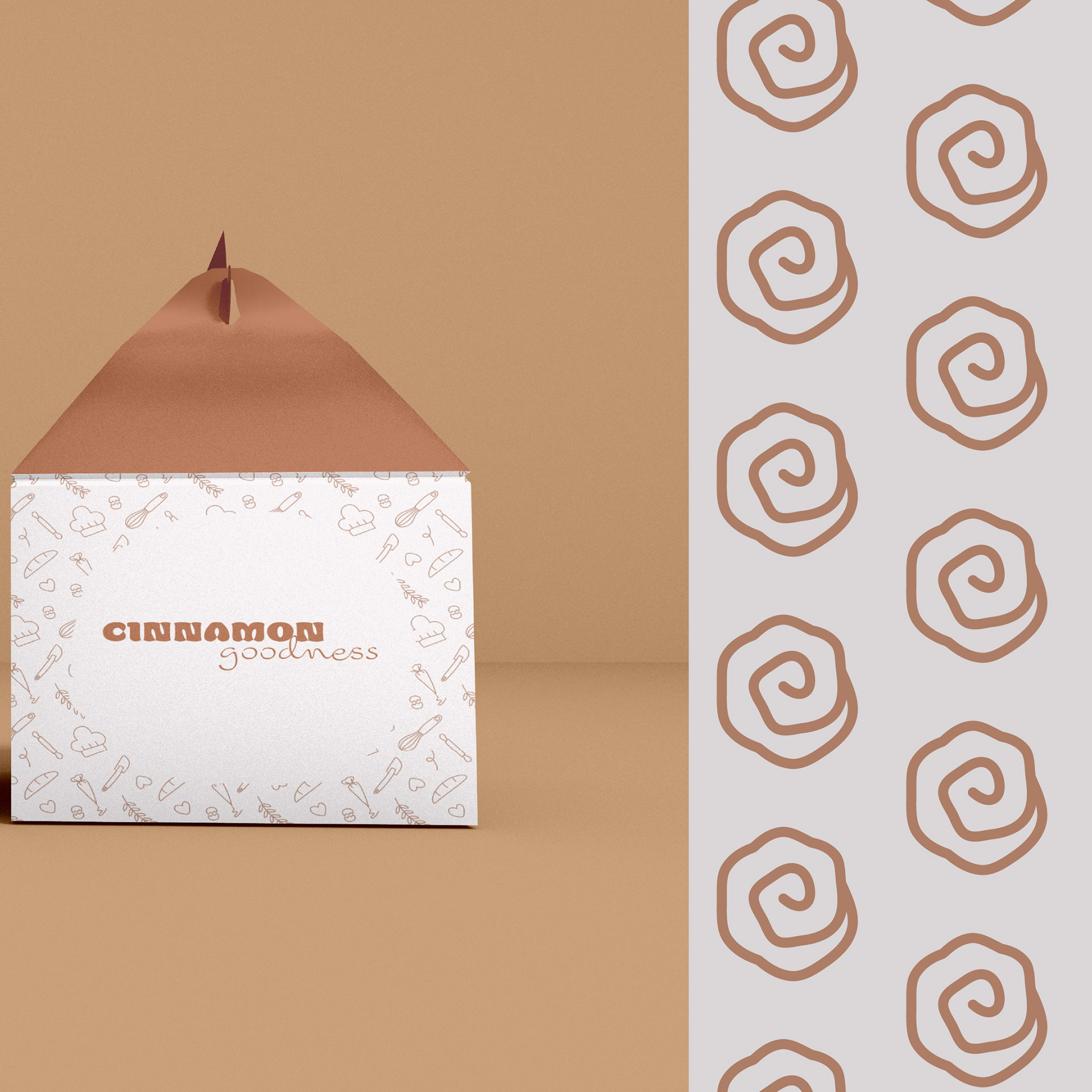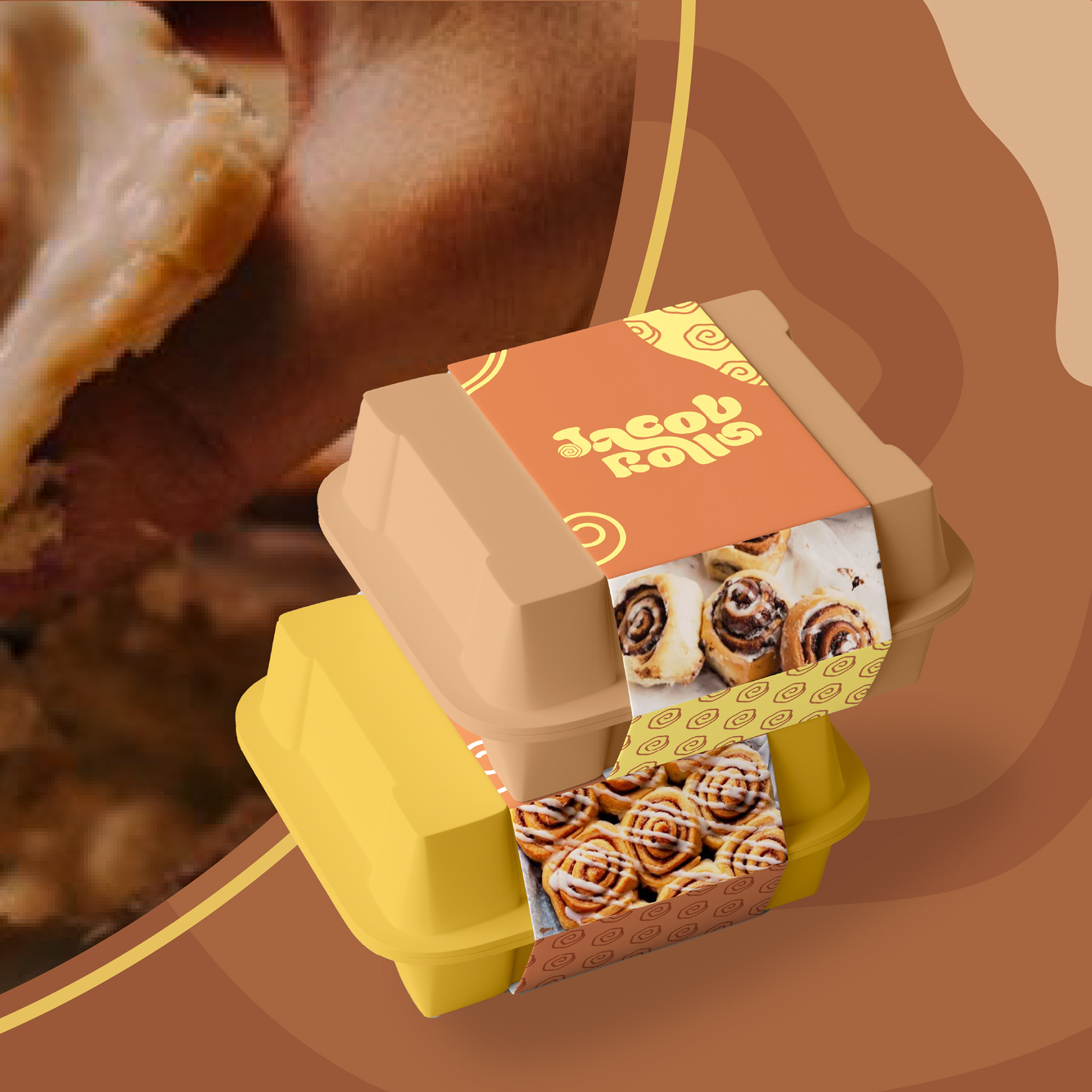 Jacob has a small shop and sells all kinds of cinnamon rolls. It needs fancy branding. The client needs a logo suite and some packaging designs.